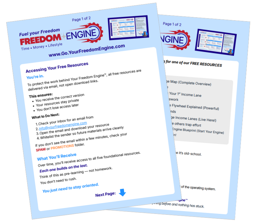 This training is a Short Version of: The Freedom Engine™ Blueprint (Putting it ALL Together)